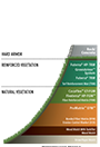 Flexible Growth Medium™ (FGM™) have functional longevities of greater than 12 months, and are commonly used to stabilize steep closes (<1H:1V), long slogs, rough slopes, highly erosive soils, and when rainfall is expected within 48 hours of application. The ultimate performer is Flexterra® High Performance-Flexible Growth Medium™ (HP-FGM™). This product is also appropriate for extremely dry conditions. The GreenArmor™ System offers a more aesthetically pleasing and environmentally superior way to protect high-discharge waterways and steep slopes, and can replace more expensive rock or concrete for entryways, water features, even articulated block designs and MSE wall designs. It starts with Futerra® TRM and includes Flexterra HP-FGM infill.
