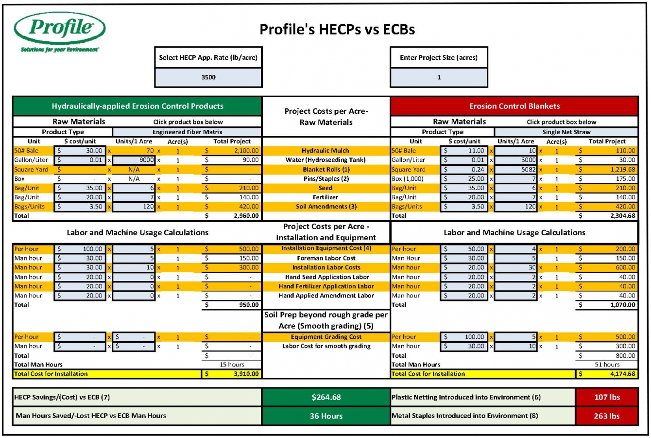 Download the calculator to compare the cost of hydraulic mulch versus rolled erosion control blankets and see how you can save.