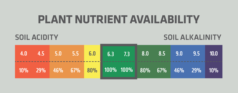 ProPlus® NeutraLime™ Dry quickly neutralizes acidic soils, promoting more complete germination and improving nutrient uptake. The faster you establish vegetation, the sooner you can walk away from an erosion control project. NeutraLime will help you do just that. The following chart illustrates the availability of key nutrients at various soil pH levels.