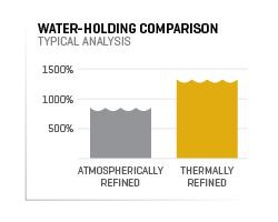 By way of comparison, competitive wood fiber mulches typically use an atmospherically refined wood process, which creates shorter, coarse fibers that greatly reduce water-holding capacity.
